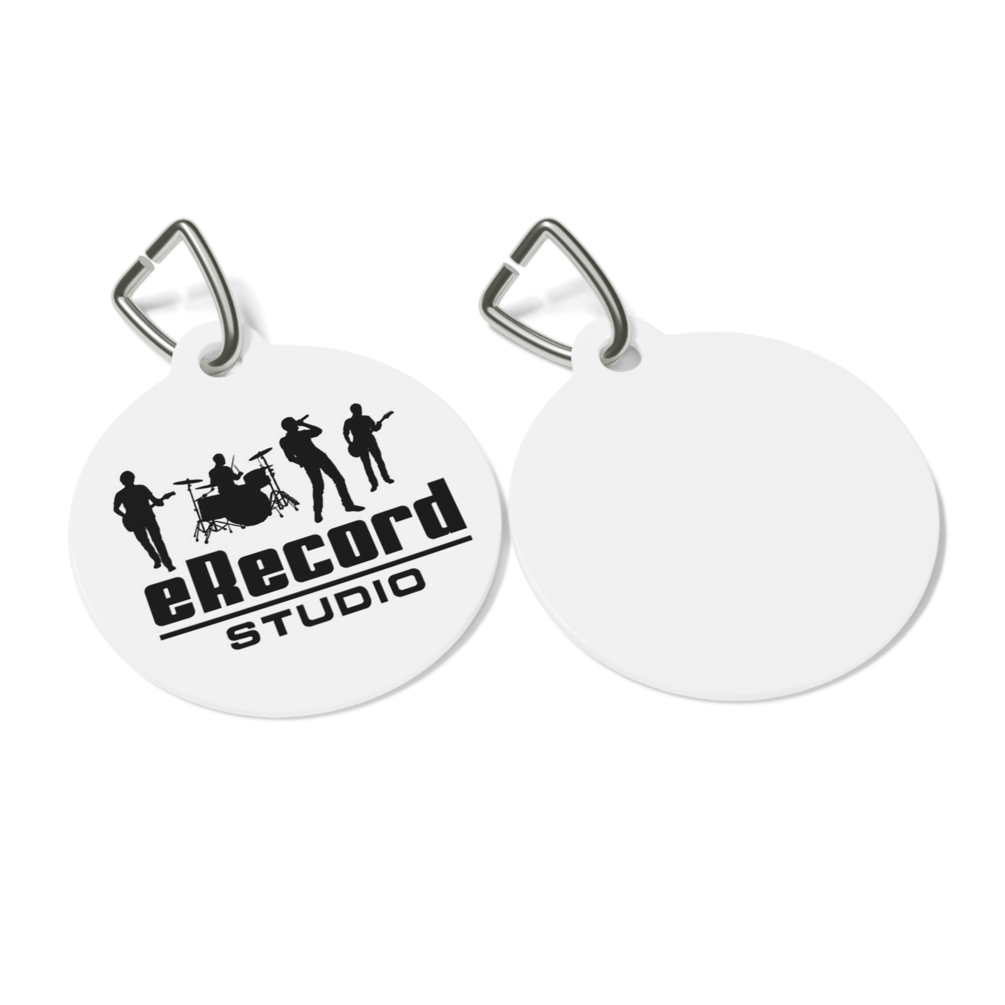 Personalized pet tags provide a fresh way to spice up a furry friend’s collar. The tag and clip are both made of metal. This increased durability comes in handy, as collar pieces can snag on brush, corners, etc. The base color is white, giving designs an even printing surface. Both sides are flattened.